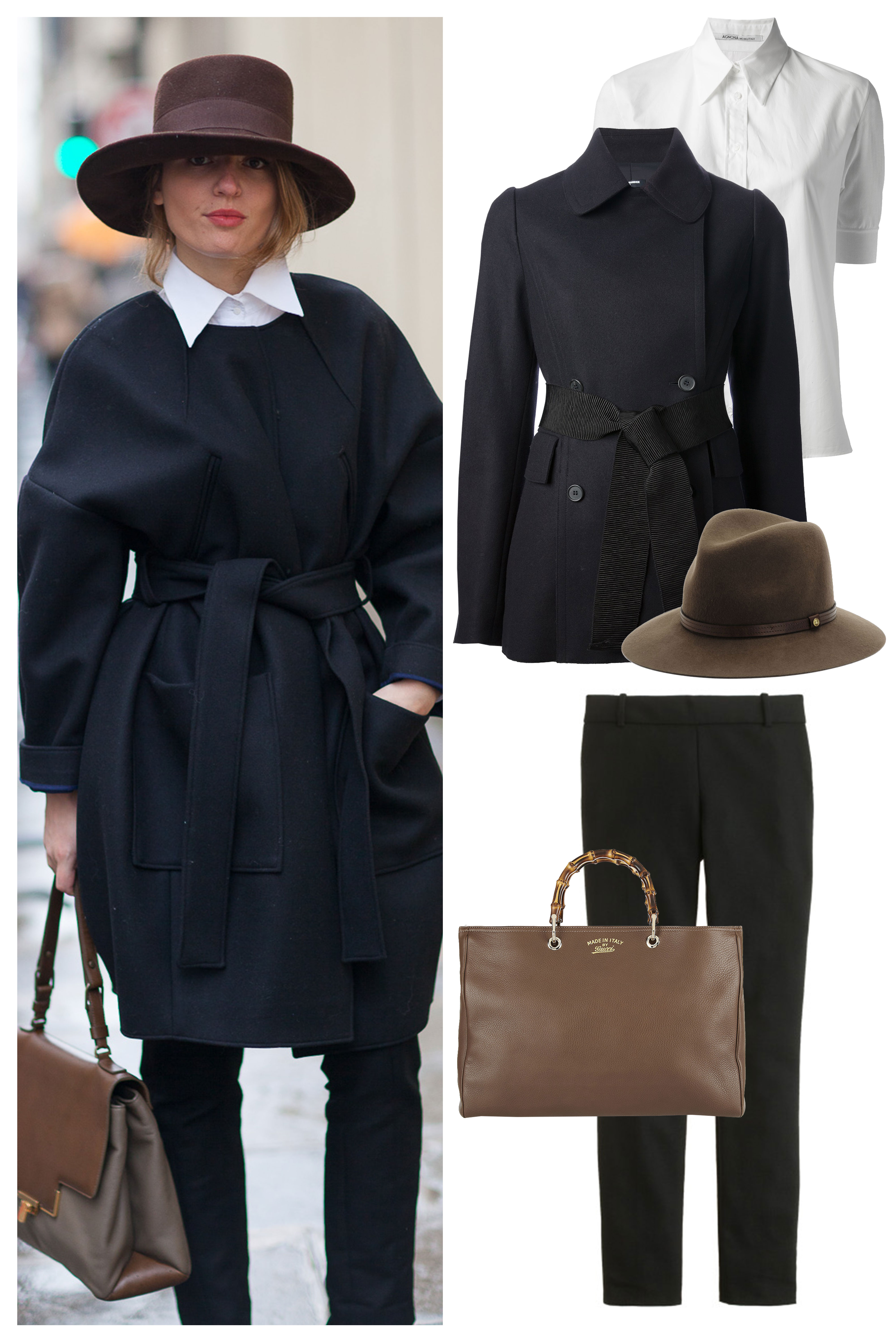 This is a perfect and cosmic combination of coat and blouse, shining with an amazing camel color hat, of course with an amazing bag , ( Can be other color ) with this outfit, you save the accessories. !!! You are just Cosmic.!!!