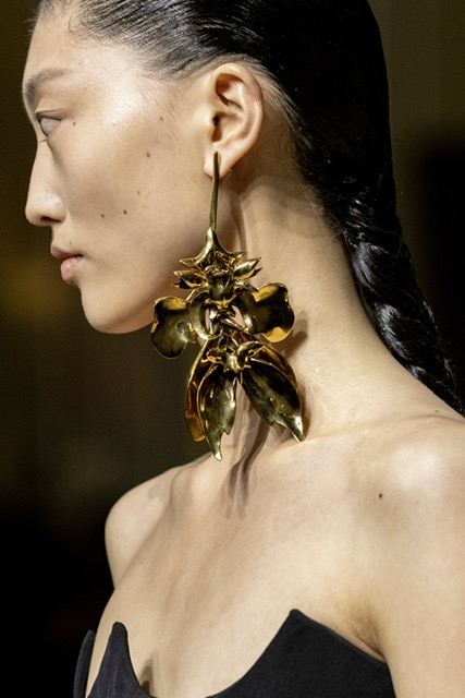 Sarah Burton said : “It was looking at anatomy, the anatomy of tailoring,” she said backstage. “Almost back to the beginnings of McQueen on Savile Row. It was a progression, which starts very kind of straight and structured. And then it begins to flash and twist and turn upside down. It’s like how you begin with a garment—you have to know that there’s a way to construct it, the bones of it, before you can dissect it and subvert it.”